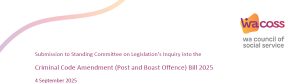 Read MoreThe Western Australian Council of Social Service Inc. (WACOSS) welcomes the opportunity to make a submission to the Standing Committee on Legislation on the Criminal Code Amendment (Post and Boast...