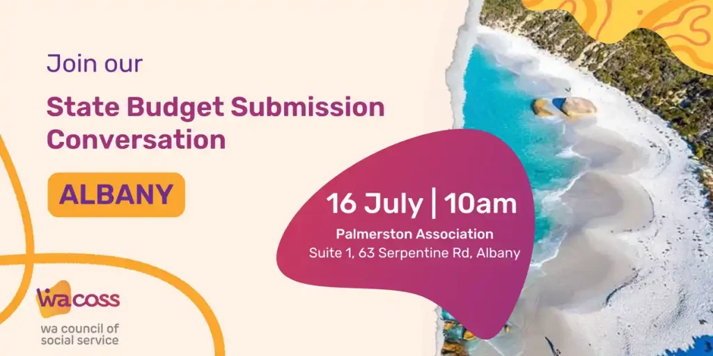 The Western Australian Council of Social Service (WACOSS) invites you to play a crucial role in our State Budget Submission Community Consultations. Each year, WACOSS delivers a comprehensive submission to the WA Government, recommending priorities for public investment to improve the lives of individuals and communities. The submission identifies emerging issues, underscores the critical needs of frontline community services, and the essential investment needed to build thriving communities.
