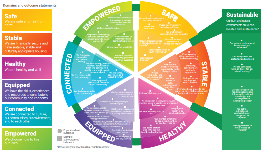 One of the most strategic pieces of work WACOSS has led is the development of the WA Outcomes Measurement Framework, in partnership with Department of Premier and Cabinet and with oversight from the Supporting Communities Forum Working Group. With a growing recognition that shared outcomes are vital to drive a unified vision for the wellbeing of all Western Australians, the Framework provides the scaffolding to support a transition to outcomes focused service delivery.
