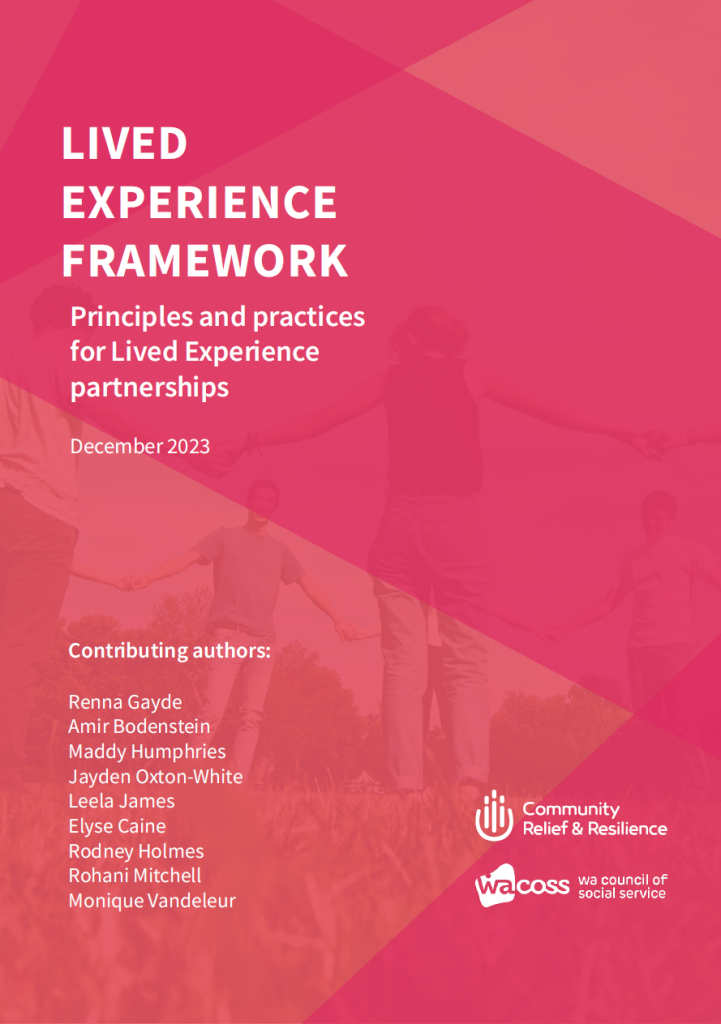 The Lived Experience Framework – Principles and Practices for Lived Experience Partnerships outlines the principles and practices that WACOSS aspires to for working with people who have Lived Experience.