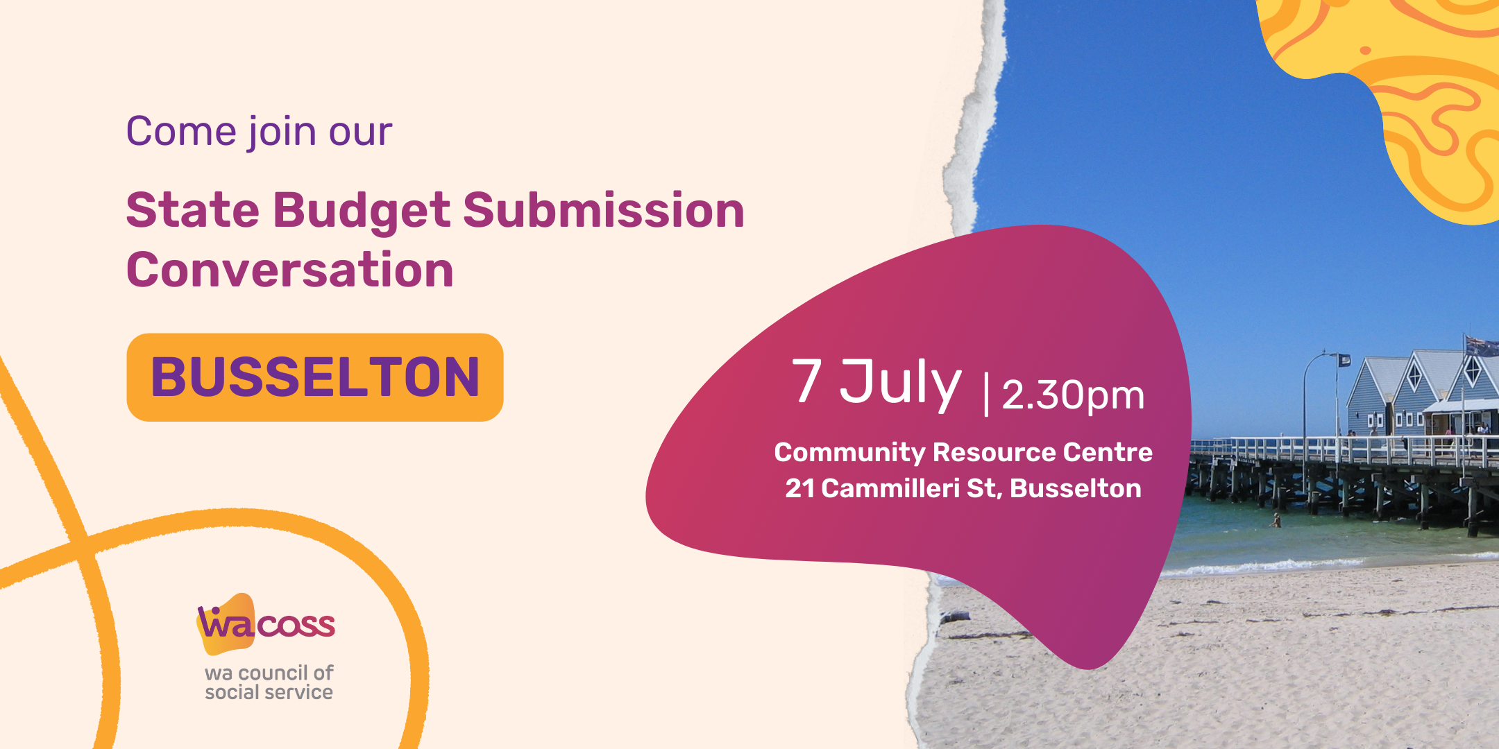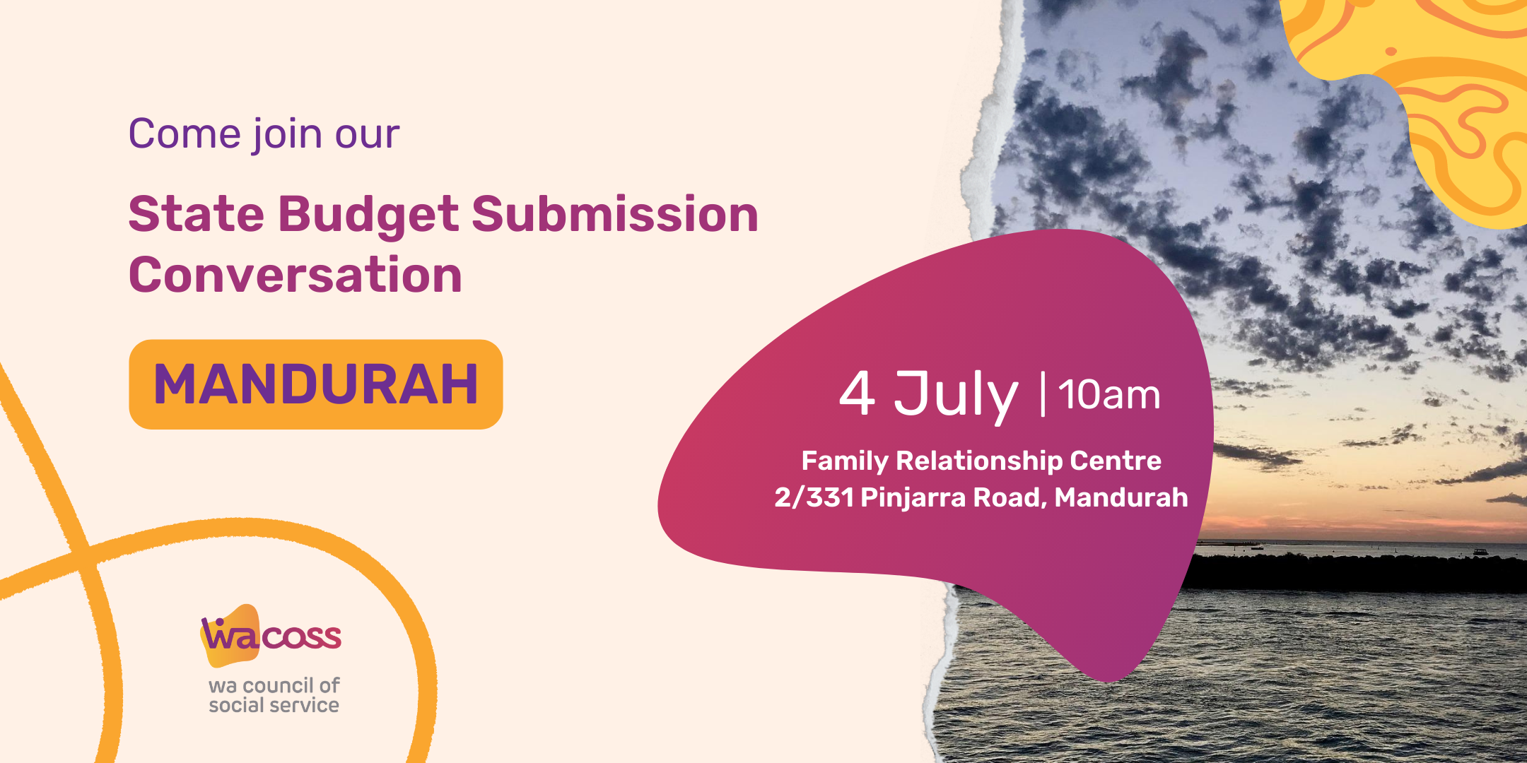 The Western Australian Council of Social Service invites you to our State Budget Submission community conversation. Each year WACOSS makes a Submission to the WA Government outlining priorities for public investment for people and communities who experience vulnerability and disadvantage, highlighting emerging issues, priorities of frontÂline community services and investment in community services. In his […]